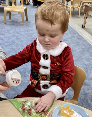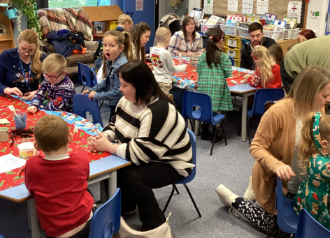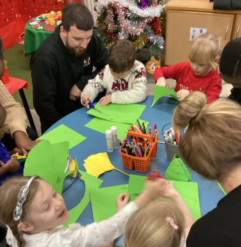 It was lovely to see so many of you come into school this afternoon to support your children in our “Christmas Decoration Day”. We loved seeing the children dress up and have fun with their grown ups. The children enjoyed a range of crafting activities, from snowman mittens to baubles. They were definitely excited to be making their classrooms look so jolly and magical.