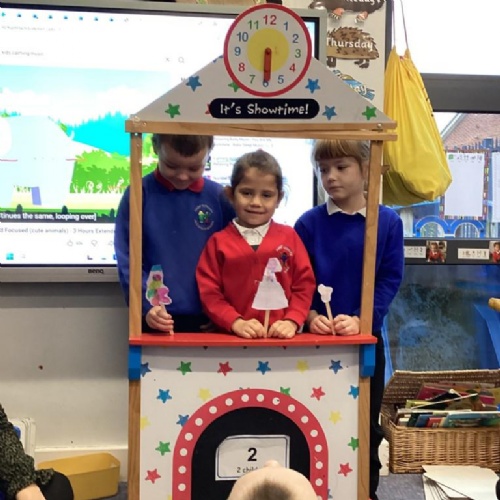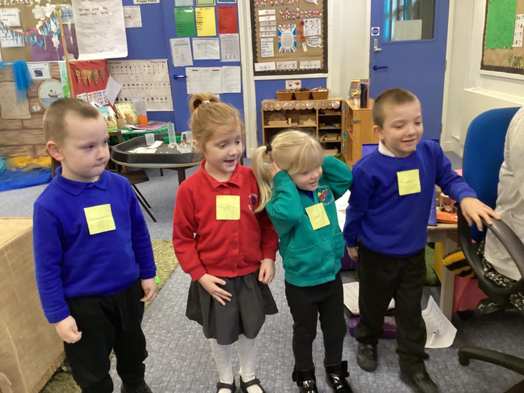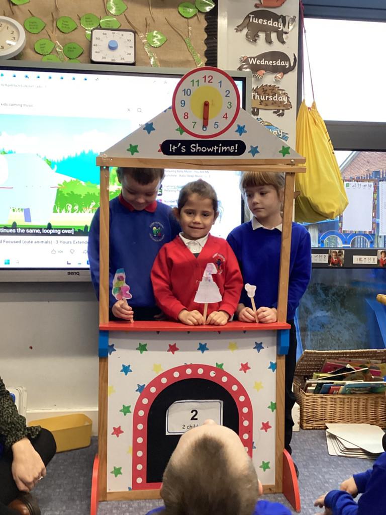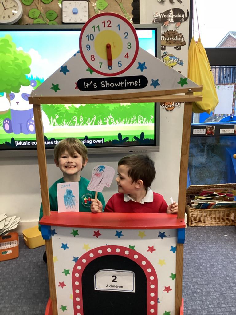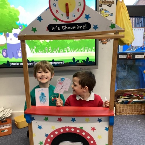 The children helped to make puppets for a puppet theatre show and were excited to create an adjective word tree to describe all the characters.